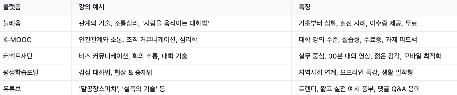 대표 무료 커뮤니케이션 강의 플랫폼 TOP 5